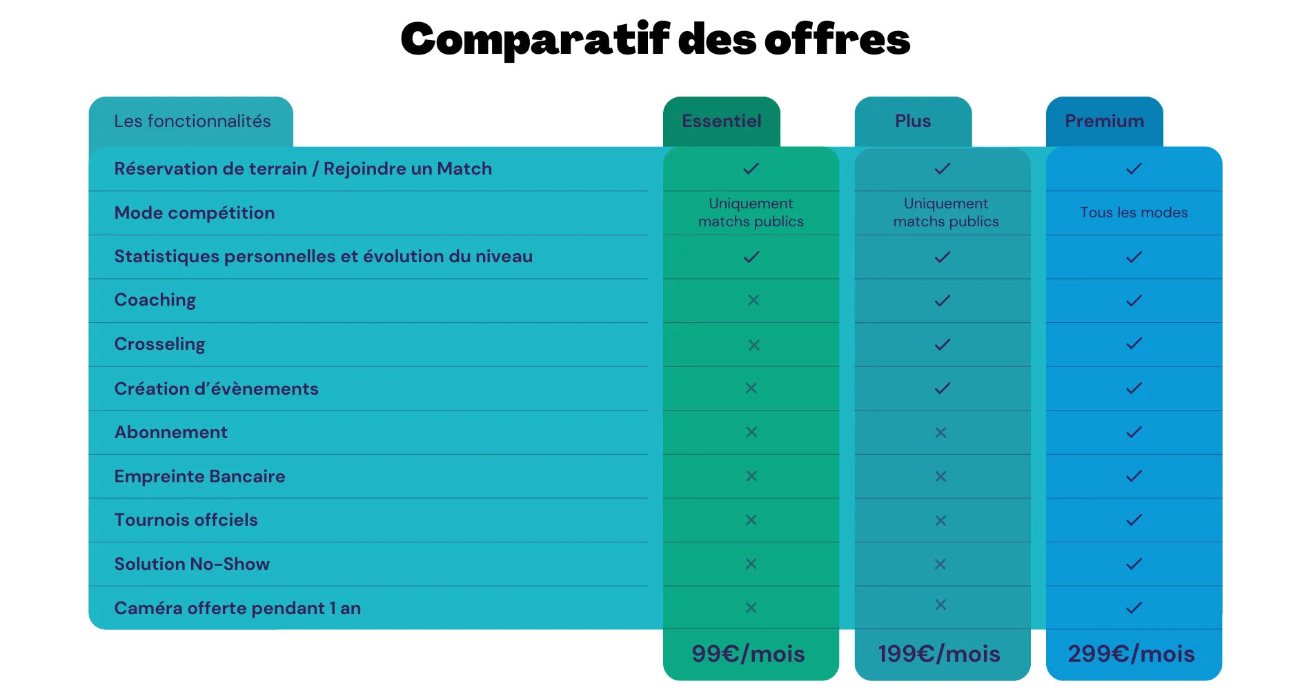 PlaySight est notre partenaire officiel pour les caméras de terrain: vos matchs sont enregistrés, disponibles en live et replay. Pleinement intégré dans notre logiciel pour une expérience fluide, sans friction.